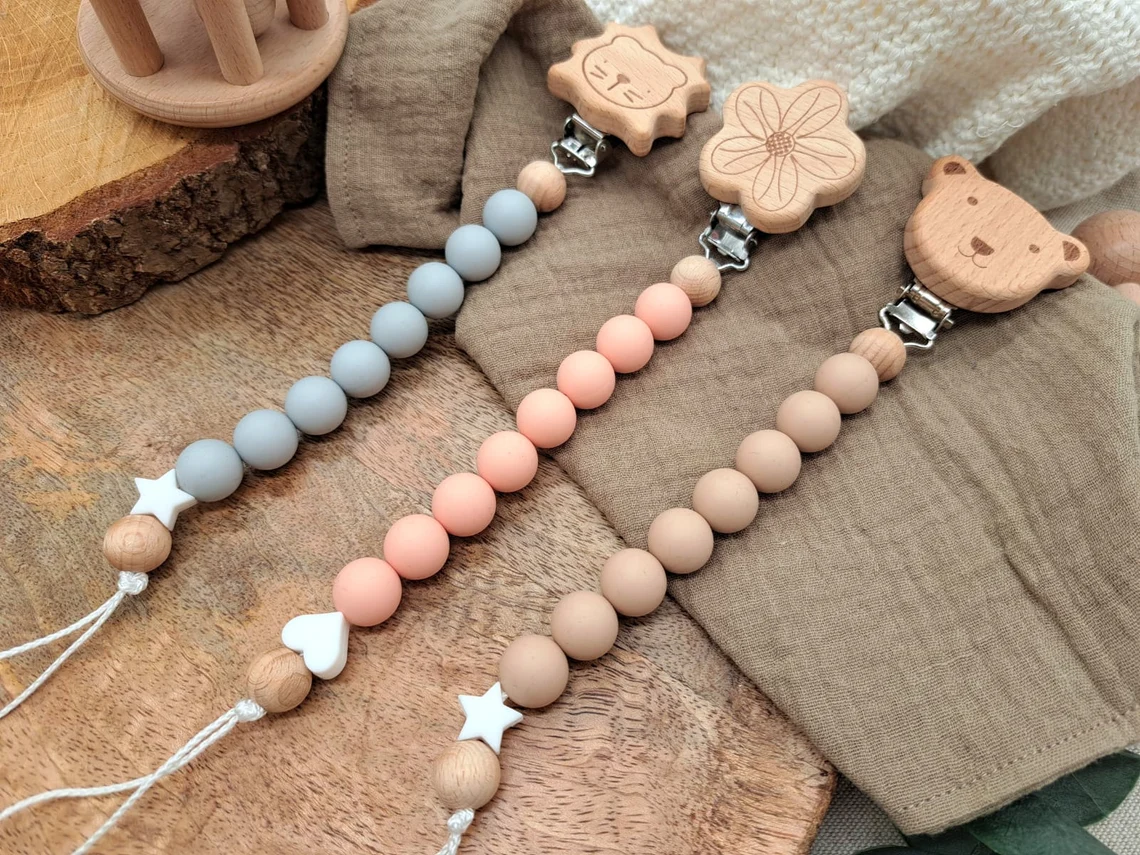 Show productsPacifier chains are more than just baby accessories; they are thoughtful creations that combine practicality with handmade artistry. Each simple, handmade pacifier chain is designed to ensure your baby’s pacifier stays within reach while offering a unique, personalized touch. Crafted from safe, high-quality materials, these chains add a touch of charm to your little one’s essentials while providing peace of mind for parents. Perfect as a baby gift or a functional addition to daily routines!
